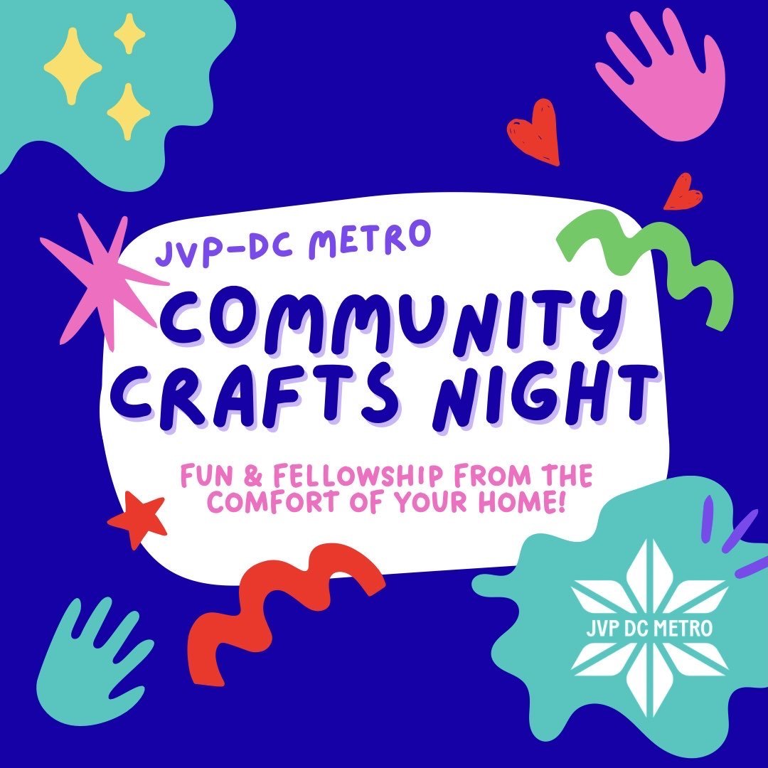 Do you enjoy spending time in community? Want to do it while crafting - and from the comfort of your home? Join JVP-DC Metro via Zoom for Community Craft Nights on the first Thursday of every month. We welcome you for an evening of fun and unwinding, whether you're cooking, cleaning, crocheting or just vibing!